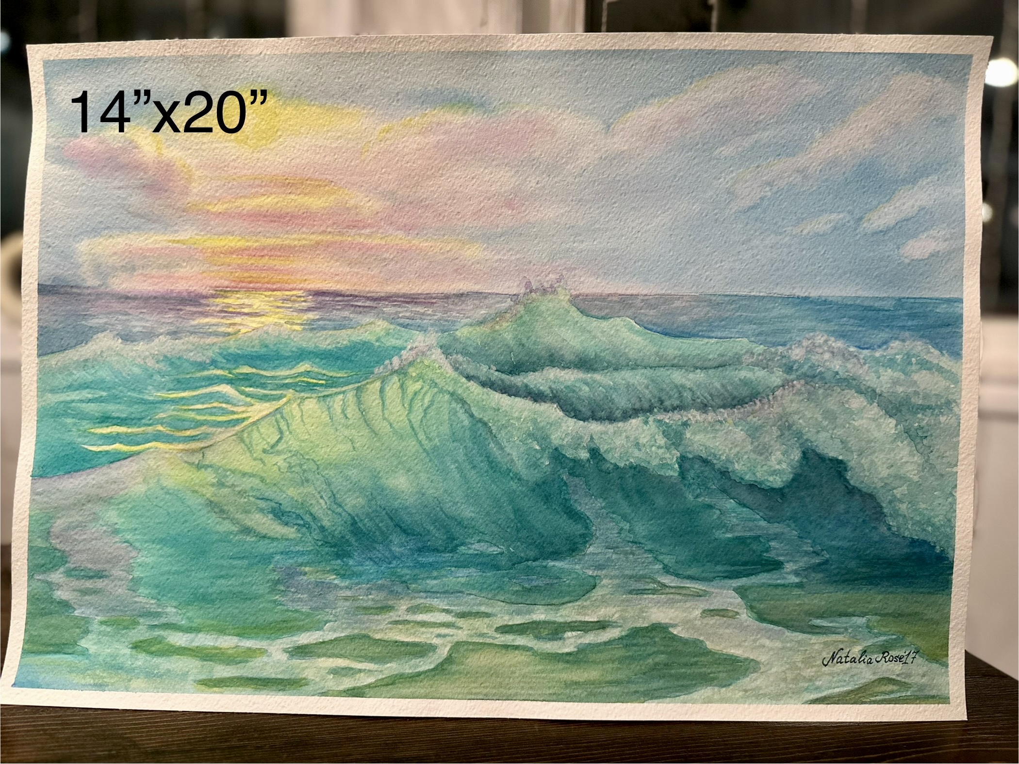 Original watercolour painting “Emerald Sea Wave”. Unframed.