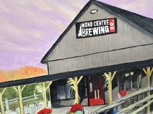 Original oil painting of Mono Brewing Company located in the heart of Mono, Ontario. The Brewery was established in 2022 by a former elementary school teacher Zach. Since then, it has become the staple of Mono, popular with both locals and tourists..
