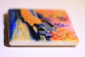 Natural stone coaster printed on high quality stone imported from Italy showcasing my original art printed with UV treated paint, making the paint very durable. Very sturdy and feel good in your hand with the weight and the coolness of the stone. The print is bright and eye-catchy. The bottom has silicone pads to protect your surfaces.